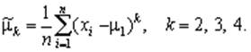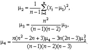 Выборочные значения центральных моментов случайной величины X вычисляются по выборке с применением с формул