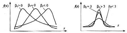 Рис. 2.4. Асимметрия распределения Рис. 2.5. Эксцесс распределения
