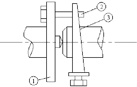 Использование центров в качестве установочных элементов предусматривает применение того или иного поводкового устройства, передающего крутящий момент заготовке. Такими устройствами являются поводковые патроны, хомутики и т.д. (рис. 43). Передача крутящего момента подаётся через палец-поводок (2), закрепленный в патроне (1), и хомутик (3), устанавливаемый на заготовке.