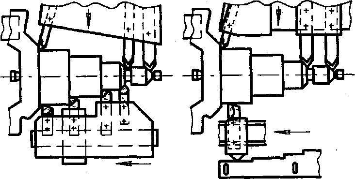 | Рис. 48. Схемы наладок многорезцовыхстанков: а — без копира; б — по копиру |