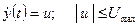 условием (5.6), то торможение не может быть мгновенным, и, следовательно, объект пройдет заданное положение. Учитывая это, после точки С (рис. 5.2,б) следует осуществить торможение с максимально возможным замедлением: и u = –Umах. При этом скорость будет убывать по линейному закону, а выходная переменная – нарастать до заданного значения по параболе, поскольку теперь после интегрирования (5.6) получим